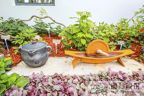 而花境中點綴的藥臼、藥碾、藥葫蘆、藥箋等中藥小品,不但營造出濃濃的中藥氛圍,而且能夠吸引游客看一看、摸一摸,身臨其境感受中藥文化的博大精深。這樣的實景體驗,讓游客不再是“隔空看花”,而是與園林景觀實現了有趣的互動。