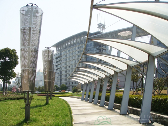 海寧市海洲廣場北區Ⅱ標段(綠化工程)位于海寧市行政中心內,區域范圍由海洲路、高家橋河、丁橋港一路兩河圍成,綠化用地123000平方米。該工程為綜合性園林工程,分為17個分部,包括園路、林蔭停車場、人文廣場、林蔭廣場、親水平臺、浮雕、噴泉、景觀亭、景觀廊、休息廊、網球場、小方塊道路、假山、園形花廊、鋪裝停車場、綠化工程、給排水工程及電氣安裝等。