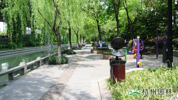 該工程位于杭城南部,施工范圍為倉河下路至鳳山橋,內容包括綠化種植、土方、園路平臺、廊架棧道、雕塑基礎、河道清淤等。工程在充分尊重歷史文脈的基礎上,再現了生態優美的自然環境,綠意盎然的植物、舒緩平坦的園路、飽經滄桑的古橋、栩栩如生的雕塑,與沿街的粉墻黛瓦、名人故居等遙相呼應,千年中河美景,盡顯無遺。