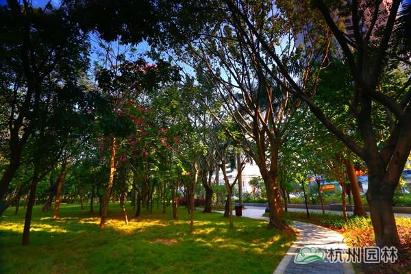 深圳市桂花路都市公園帶工程是一個改造提升工程,長約1.7公里,綠化恢復總面積約10萬平方米,施工范圍包括道路中央分車綠帶、道路分車綠帶及路旁綠地,施工內容包括種植土回填、綠化種植、綠化灌溉等工程。自2012年5月開工,2013年6月竣工,由杭州市園林綠化股份有限公司承建。榮獲“2014年度浙江省優秀園林綠化工程金獎”。