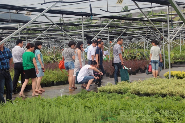 上午9:00,眾廠商代表在青山湖?花園中心運營部經理徐偉峰及各招商經理的帶領下,登臨青山湖水庫大壩,冒雨俯瞰整個青山湖?花園中心。從大壩上望去,整個花園中心的布局及周邊的青山湖板塊別墅、房產項目一覽無余。之后,大家又興致勃勃地參觀了4000平方米的玻璃溫室室內賣場,以及46000平方米的戶外賣場。