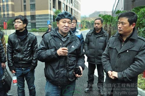 每到一個工程現場,工地負責人都先介紹工程的施工情況,然后,帶領大家進行參觀,并隨時解答觀摩組一行提出的各種問題。每項工程觀摩結束的時候,三位專家都會集中點評,從苗木種植、植物搭配、水景營造、地形整理等各方面指出工程施工中存在的優勢與不足,并提出需要改進的地方。
