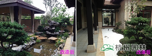 改造前后的中庭中心水池
