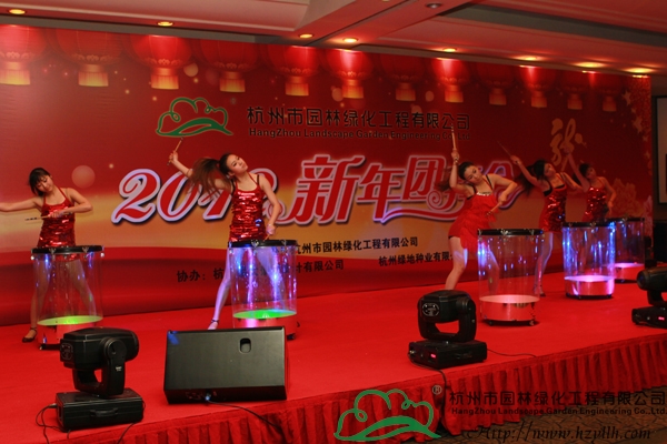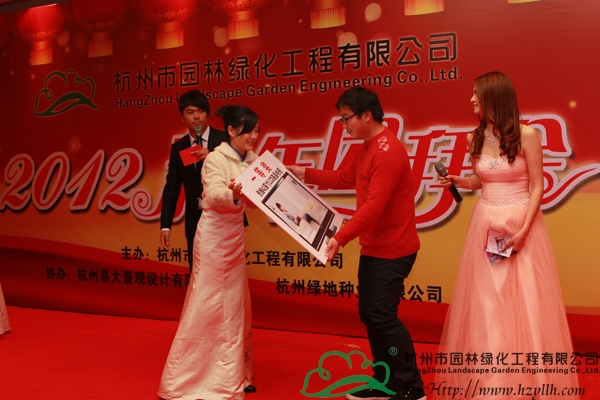 隨著晚宴的開始,精彩的節目表演也拉開了序幕。一曲熱情激昂的鼓樂《中國龍》,營造出了龍年吉祥喜慶的節日氛圍,隨后,唯美的獨舞表演、深情的情歌對唱、優美的葫蘆絲吹唱,功夫茶道、詩詞朗誦、搞笑小品……一個又一個精彩節目,將現場的氣氛一次次推向高潮。而期間最令人期待的,是現場的抽獎環節,一等獎的42寸高清液晶電視機、二等獎的皇冠寢室羽絨被、三等獎的博洋家紡四件套,豐厚的獎品讓每個人都期待著幸運的降臨,隨著一組組數字的公布,抽到獎的人一個個歡喜雀躍,興高采烈地領走了獎品,現場成為一片歡樂的海洋。最后,投標中心的一曲《明天會更好》,傳達了所有人對2012年的美好期待和祝愿,也預示著杭州市園林綠化工程有限公司2012年新春團拜會的圓滿成功!