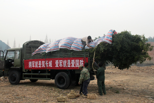 為給官兵營建綠色的生活環(huán)境,杭州市政府從杭州市園林綠化工程有限公司位于臨安泉口的苗木基地選購了一批桂花樹送給駐舟山部隊。據(jù)悉,此次選購的桂花為蓬徑1.8米至3.5米的大苗,品種有四季桂、硬葉丹桂、波葉金桂等。同時,該公司還派出了專業(yè)技術人員前往舟山指導種植工作。