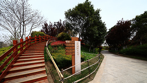 為恢復(fù)植被,修復(fù)裸露的山體,工程中應(yīng)用了大量的植物,其中,榔榆、喜樹、樸樹、三角楓、黑松、香樟、銀杏、無患子、女貞、欒樹、七葉樹、五角楓、楓香、雪松、烏桕、廣玉蘭、黃連木、黃金槐、馬褂木等喬木50余品種,2.3萬余株,鄉(xiāng)土樹種占88%;垂絲海棠、映山紅、櫻花、紫薇、金絲繡球、含笑、紫葉李、茶梅、紅梅、紅櫨等花灌木100余品種,2.5萬余株;紅葉石楠、金森女貞、扶芳藤、南天竹、灑金珊瑚、水果蘭、六道木、檉柳、衛(wèi)矛、無刺枸骨、毛鵑、連翹、金鐘、迎春、紅花檵木等綠籬40余品種,面積約4.1萬平方米;各種宿根、球根、時(shí)令花卉和水生植物,如薰衣草、金雞菊、郁金香、鳶尾、牡丹、金絲桃、珍珠梅、繡線菊、美人蕉、荷蘭菊、蒲公英、亞菊、玉龍草、八仙花、瓊花、月季、薔薇等80余品種,面積約2.8萬平方米;鋪設(shè)草坪及地被麥冬等面積約8.7萬平方米。豐富的植物應(yīng)用,使得原本裸露的山坡披上了綠色的盛裝,公園內(nèi),春有百花爭(zhēng)艷,夏有綠蔭匝地,秋有金色滿園,即使到了冬天,也仍能看到滿山的綠色與生機(jī)。