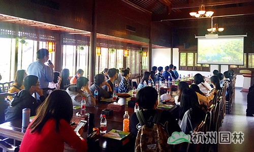 在座談交流會上,人力資源部副經理沈曉萍向大家介紹了杭州園林的發展情況,展示了企業近年來承建的精品工程,并針對園林專業學生在企業的實習方向與職業發展規劃作了簡單介紹。邱希陽老師結合自身工作經驗,針對杭州園林承建的工程特點,為在座學生做了精彩講解。