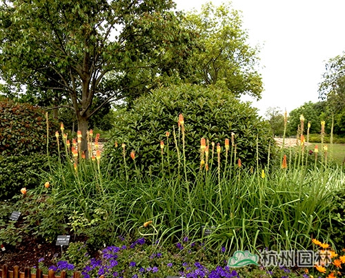 火炬花片植,在帶狀花境中做背景材料。