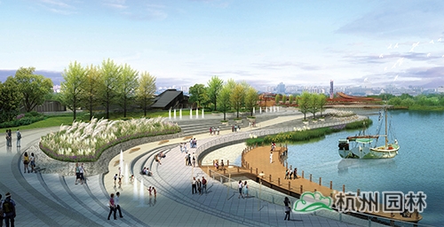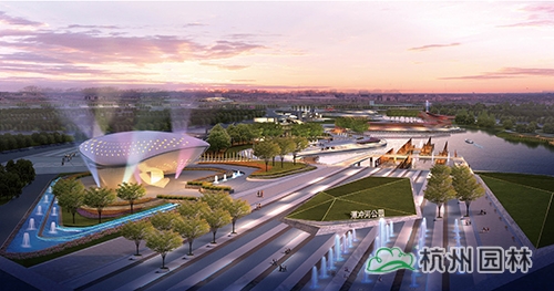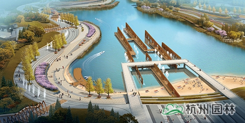 水岸廣場:臺地張弛有度,將臺階、坡道、草坪、木平臺、廣場組成豐富的濱水空間,流線型的岸線貫穿整個臺地,形成一條觀光濱水走廊,結(jié)合濱水岸線設(shè)置游船碼頭、親水平臺,形成極具特色的水岸廣場。