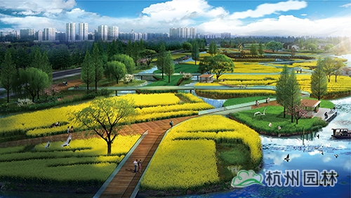 樂活園藝主題區(qū):以家庭園藝花園為主,是公園的圩田濕地體驗中心,水道如巷,河汊如網(wǎng)的圩田農(nóng)藝景觀,呈現(xiàn)出田園牧歌般的意境。包含飄帶走廊、水蕩花田等景點。