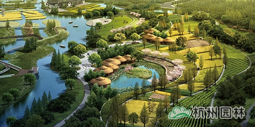 養(yǎng)生休閑主題區(qū):對原有的生產(chǎn)景觀保留改造,水稻田、葡萄園、油菜園、果園、苗圃以及可食用水生植物被布置其中,兼具經(jīng)濟(jì)與觀賞價值,結(jié)合水莊、竹庭、有機(jī)菜園,酒莊等休閑景點,推廣宣傳現(xiàn)代都市農(nóng)業(yè)。