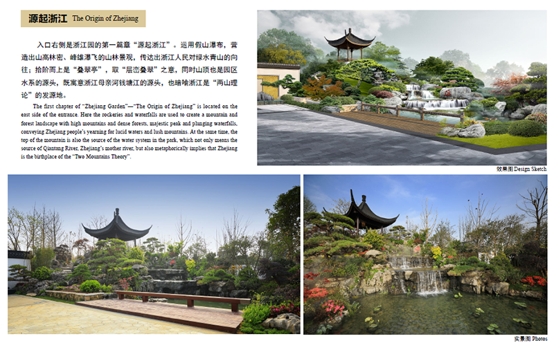 通過一幅幅效果圖與實景圖的對比,不難發現,實景圖與設計圖并沒有太大區別,實景圖最大限度表現了設計思想和精髓,實現了設計圖紙的完美落地。細心、用心、創新,深化設計團隊助力浙江園展開了一幅新時代的“富春山居圖”,在2019北京世園會上綻放出奪目光彩。這,就是浙江園的深化設計團隊;這,就是杭園股份的設計力量。