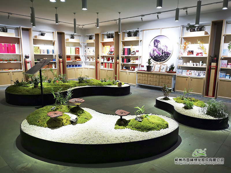 深化設計充分利用原始現場3米高差形成錯層主體建筑,從入口進入庭院觀建筑是一層,背面觀是兩層,負一層形成半地下室空間,形成了前庭后院的浙江美麗農家院落。一層展廳由茶藝展示區、會客區、書房等組成,品茶、書法、閑談、小憩,展示愜意富美的浙江生活;負一層展廳則以產品陳列為主,主要展示浙江省前沿的室內園藝品種,宣傳浙江最新的栽培技術與深加工產品等,讓園藝、生活有機融合。
