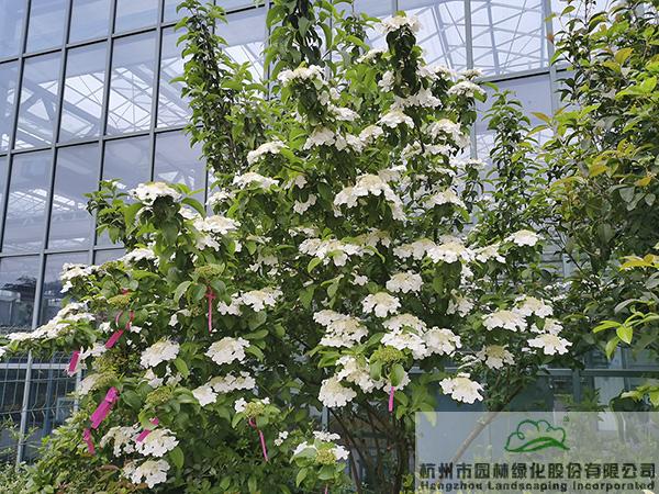 瓊花正迎來盛花期,一朵朵碩大的花朵宛若群蝶起舞,點亮了一角的風景。