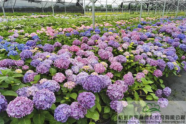據悉,在畫境種業徑山基地,共有七八十個繡球品種,規格從1加侖到5加侖,能夠滿足家庭園藝和工程用苗的多種需求。通過近幾年的生產和繁育,徑山基地不斷篩選優良的繡球品種,目前,基地里的這些品種表現都比較好,比如紅色系的搖擺樂、漢堡、花神,花色紅艷,花朵碩大,在一眾繡球中表現非常搶眼;花色豐富多變、宛如一顆顆璀璨寶石的藍寶石和藍色媽媽;花朵宛如蝴蝶翩躚、花色充滿夢幻感的佳澄;花朵密集、猶如一大捧五顏六色爆米花的愛莎;開花早、花期長、花色漸變的藍色海洋;花開時,宛如一只只白色小鳥在枝頭紛飛的泉鳥;花團錦簇、花期超長的無盡夏……可以說,每一種繡球的花色、花形都各不相同,極具特色,充滿了夏日的浪漫情懷。