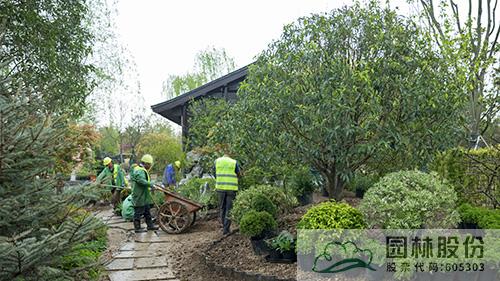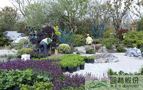 工地現場,施工人員正忙著進行放線、地形微調、植物種植、養護管理等工作,力爭早日將美景呈現。截止目前,浙江園的山石水景、硬質鋪裝、主體建筑、大規格喬灌木種植等已基本完成,接下來主要進行下層空間的花境布置等工作。