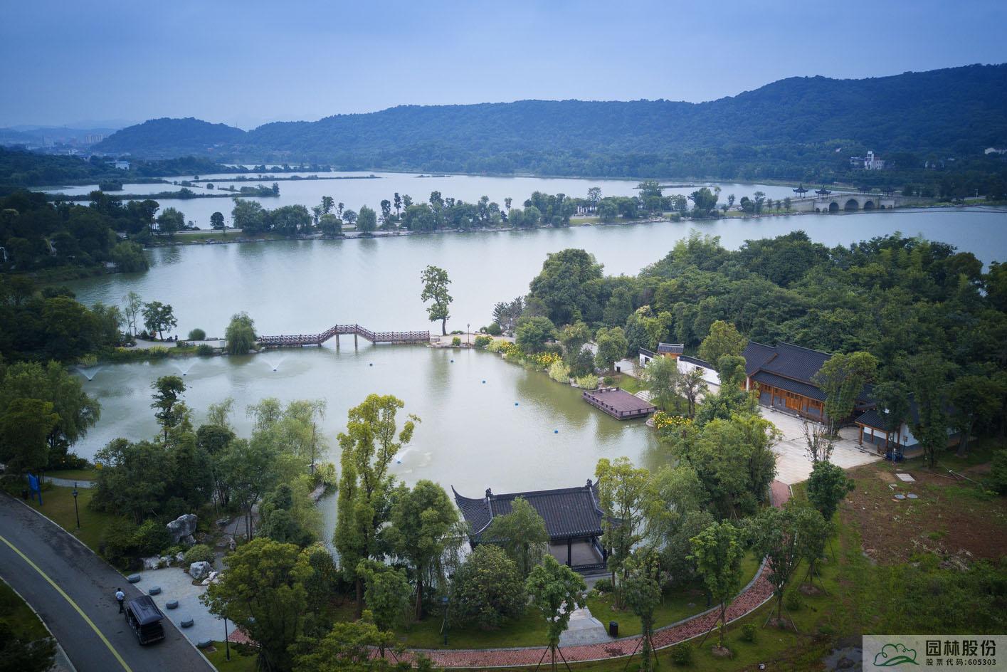 “在最大限度保護原生景觀和地形的基礎上,我們引水入園,借堤成景,融入亭、軒、閣、榭等古建文化,形成景城融合、城湖共生,兼具城市綠地功能的綜合性景區,體現了生態宜居,惠澤百姓的初衷?!眻@林股份相關負責人說。