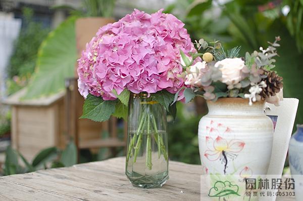 繡球不僅能成為插花的“主角”,花朵碩大、花色艷麗、莖稈強壯的繡球品種,同樣非常適合作為鮮切花。如‘傾城之戀’、‘夏日熱戀’等,不管是同色系的一枝或幾枝,或不同色系的一束,隨手插在玻璃瓶里,放在辦公桌上、餐桌上、窗臺上,都是一道美麗的風景。