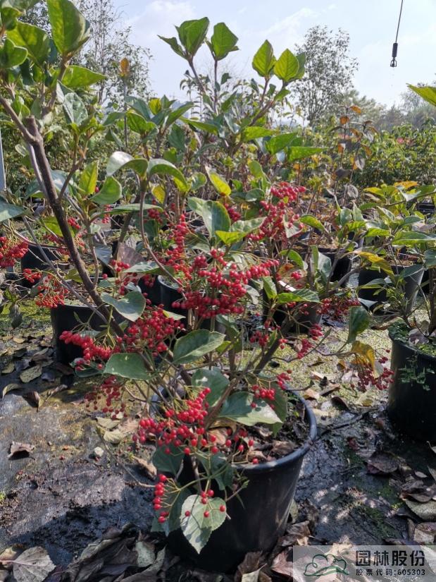 莢蒾屬植物既可觀花又可觀果,且絕大部分種類都是可以觀果的,只是被開發應用的寥寥無幾,故仍有許多優良的觀果種類有待開發,如皺葉莢蒾的一些雜交品種及很多本土原種,像宜昌莢蒾、莢蒾、傘房莢蒾等等,均具有良好的開發潛力。后期,園林股份將繼續加大莢蒾屬植物的開發力度,力爭更多的莢蒾產品在美麗中國建設中大放異彩。