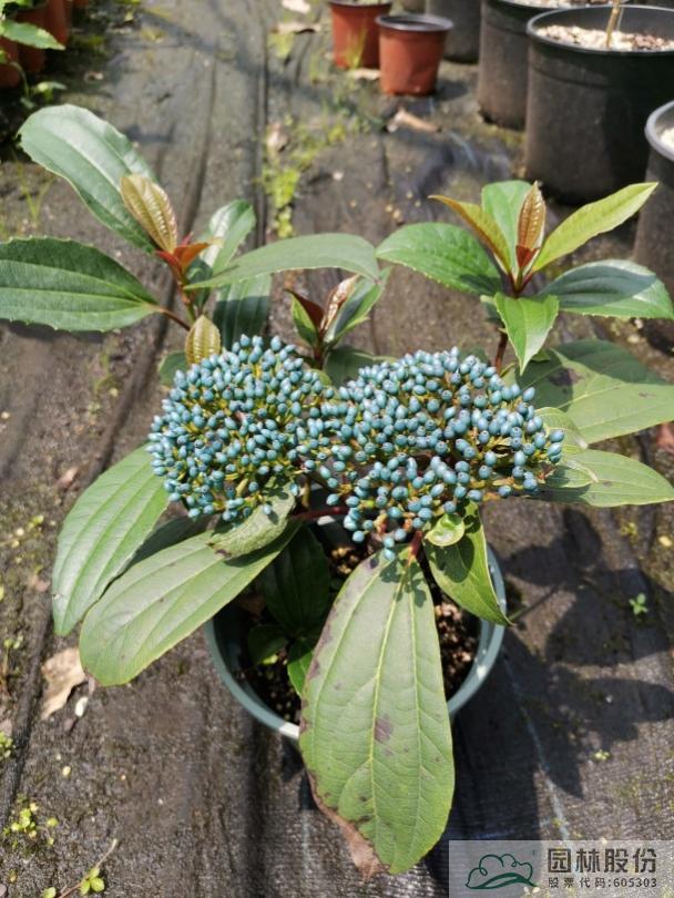 忍冬科莢蒾屬,常綠灌木。株形緊湊,葉子深綠色有光澤?;ò奂t色,開放時白色,春季開花。果實藍色,顏色會隨著成熟度逐漸變深,秋天成熟。喜歡冷涼濕潤氣候,適合盆栽或庭院觀賞。