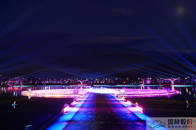 旨在打造成為川西最具規模、最具獨特創意的光影噴泉秀,結合現有水域,營造出清澈激靈動的特色。水秀的表演則以唯美靈動、色彩絢麗的表演配合水上透明舞臺上演員的輕歌曼舞,在空中光影形成的多彩穹頂的環抱下,展示出一個美輪美奐的“天空之境”。結合本項目特殊的自然環境條件,如此有針對性的設計創意,有效解決了因大開闊的區域缺少高低層次,山體林木距離主秀區距離較遠帶來的暗夜壓迫感和孤寂感,實現了全視野、多層次的豐富絢麗夜游體驗。
