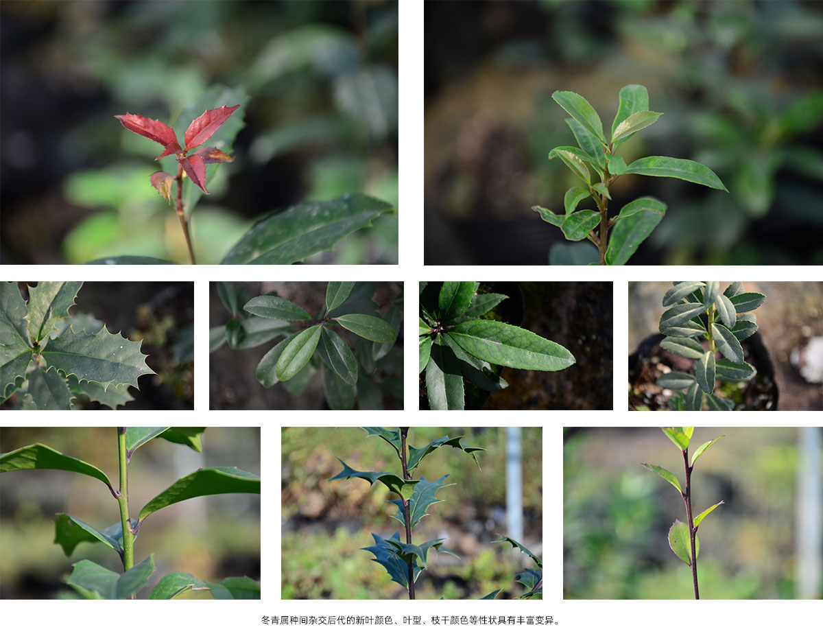 以人工授粉和開放授粉手段進行基因滲入,結合多倍體誘導、輻射誘變和分子標記等多種現(xiàn)代育種技術,開展了冬青屬、木犀屬、鳶尾屬和繡球屬等多種觀賞植物育種工作,獲得大量具有豐富遺傳變異群體。